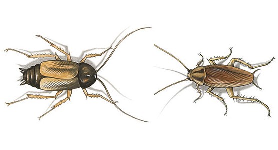 Det är den tyska kackerlackan till höger på bilden (12-16 mm) som är vanligast, och kan förekomma i stora mängder inomhus när de får fotfäste. Den trivs bäst i fuktiga utrymmen såsom kök och badrum.